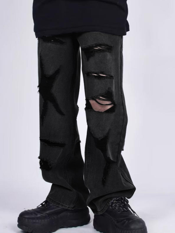 Men’s Vintage Ripped Tattered Design Loose Jeans