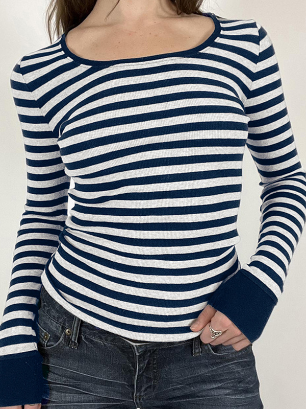Striped V Neck Knit Long Sleeve Tee