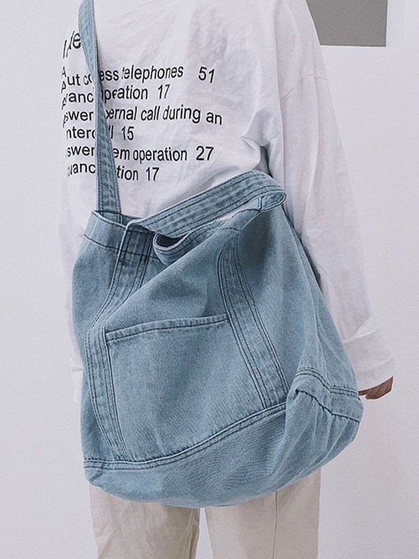 Large Washed Denim Tote Bag