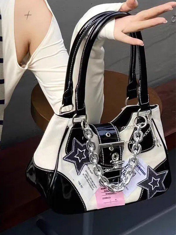 Embroidered Star Patchwork Shoulder Bag