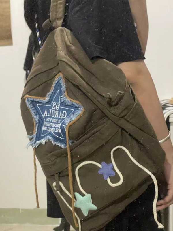 Denim Star Embroidery Decor Canvas Backpack