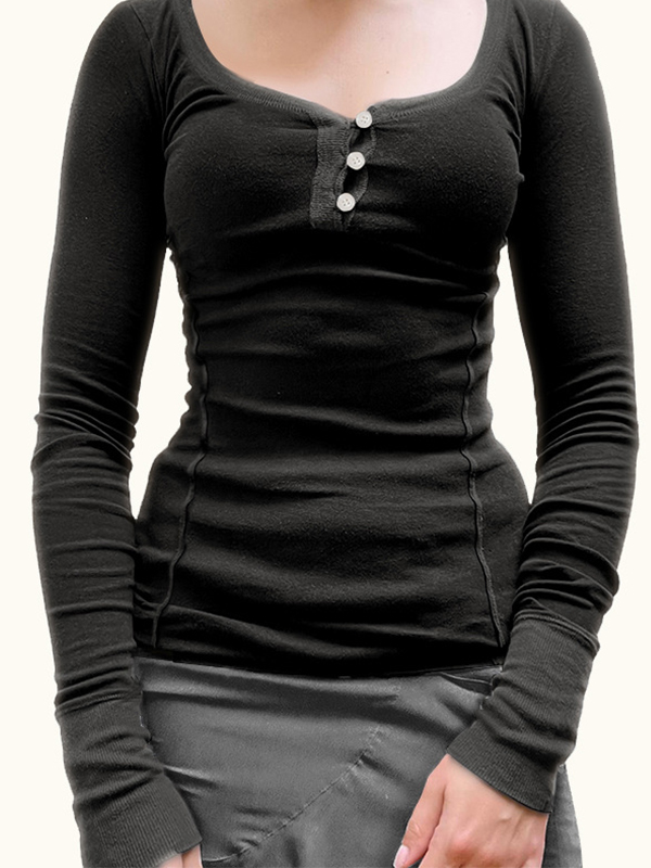 One Shoulder Fake Two Piece Print Long Sleeve Tee
