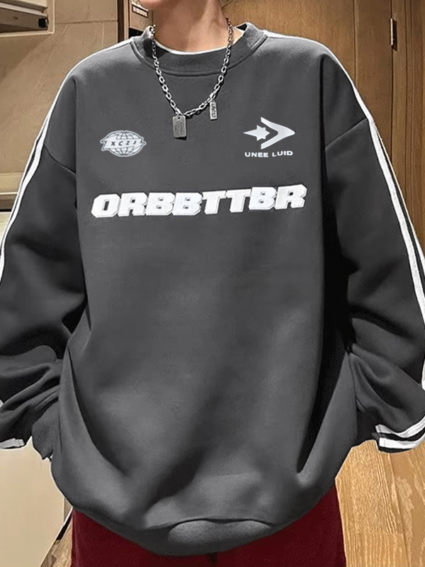 Men’s Letter Print Piping Crew Neck Sweatshirt