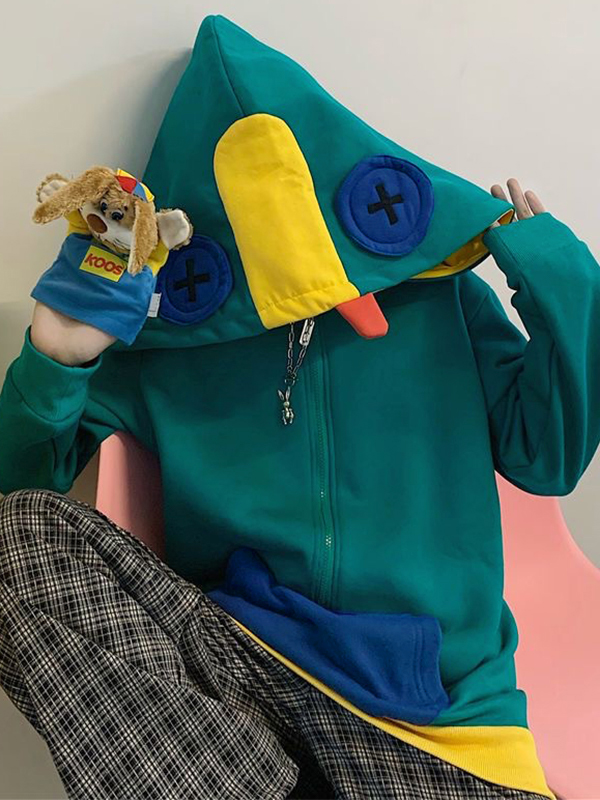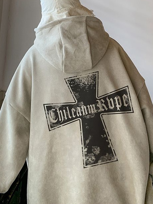 Men’s Hip Pop Print Full Zipper Oversized Hoodie
