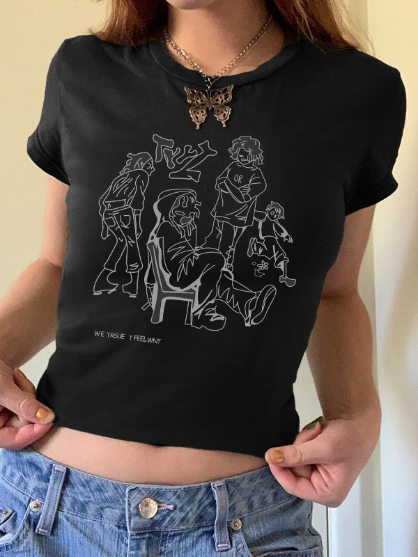 Vintage Print Cropped Short Sleeve Tee