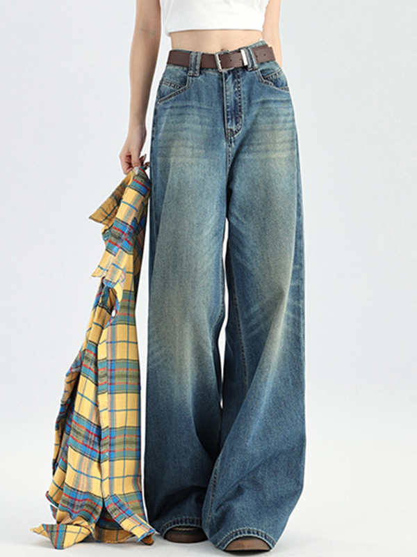 Retro Distressed Dirty Dyed Wide Legs Boyfriend Jeans