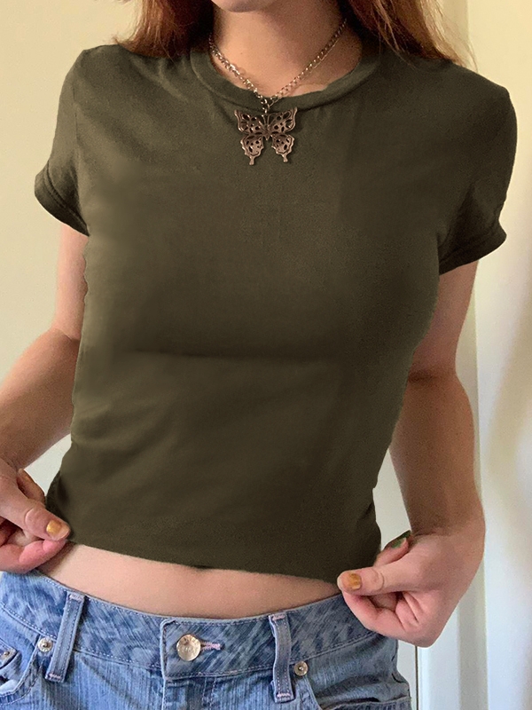 Solid Crew Neck Cropped Short Sleeve Tee