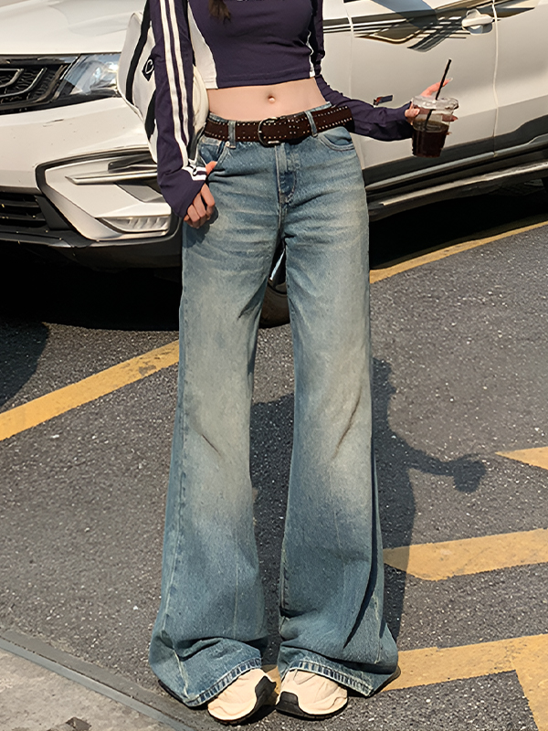 Retro Water Mark Design Flare Jeans