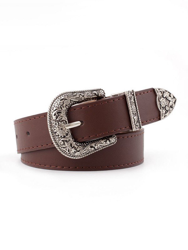 Tribal Engraved Blue Gem Decor Buckle Belt