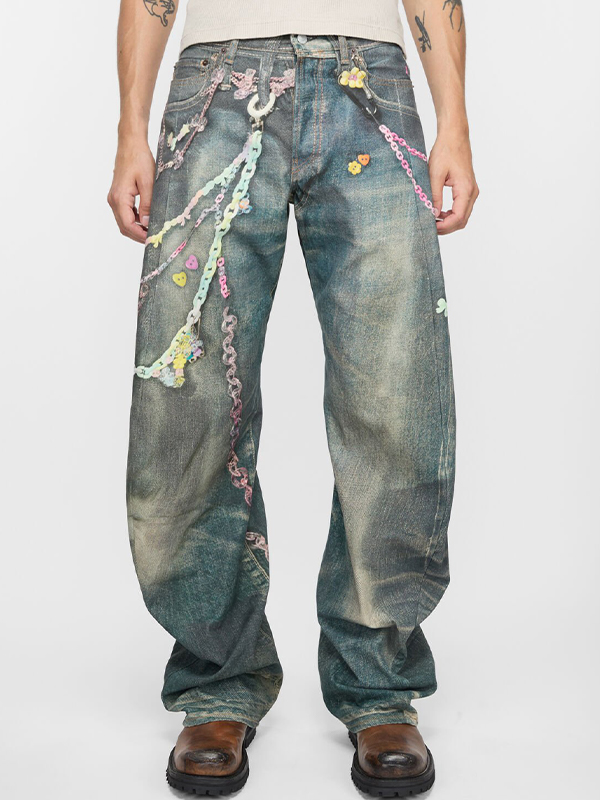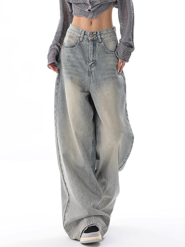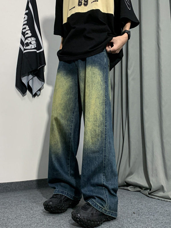 Men’s Vintage Wash Straight Leg Loose Jeans