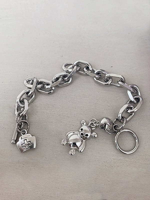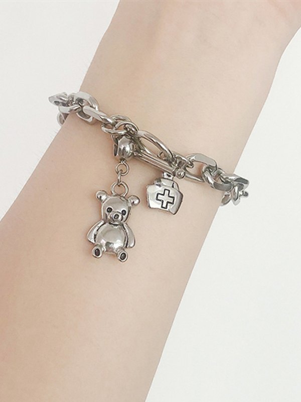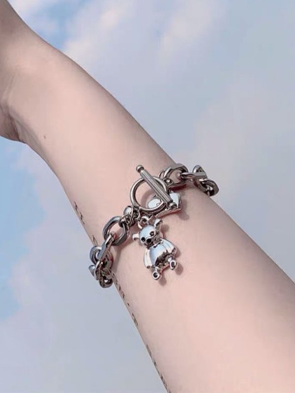 Bear Pendant Chunky Chain Toggle Bracelet