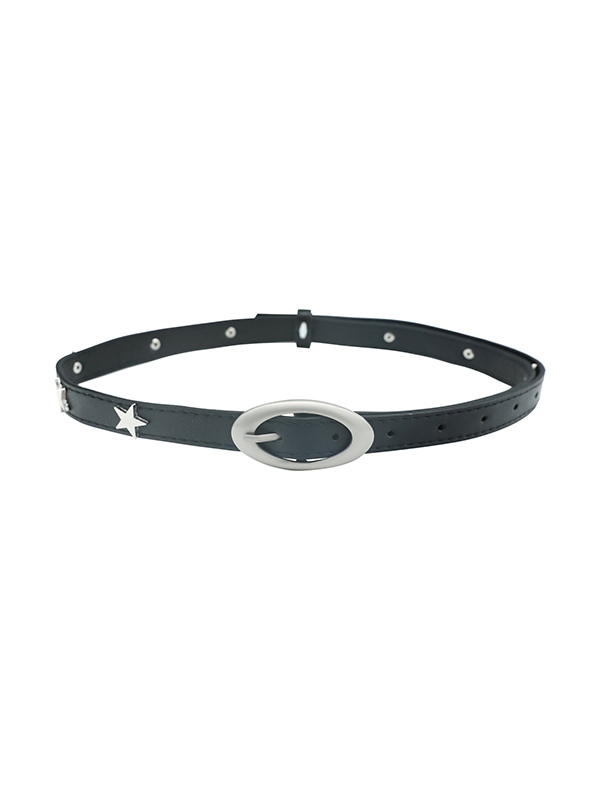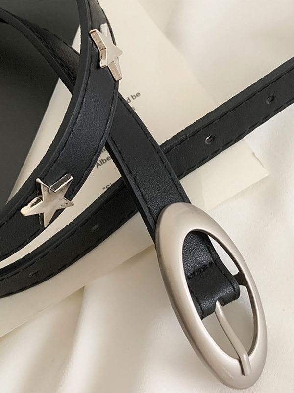 Black Star Embellished Thin Buckle Belt