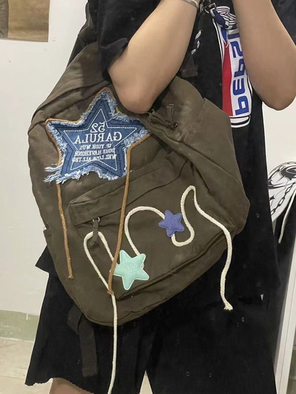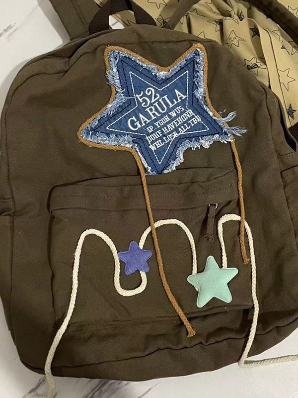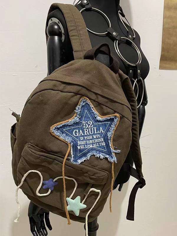 Denim Star Embroidery Decor Canvas Backpack