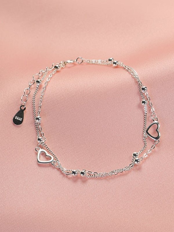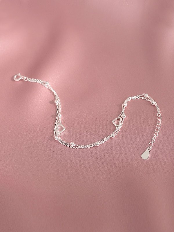 Heart Pattern Double Layered Silver Bracelet