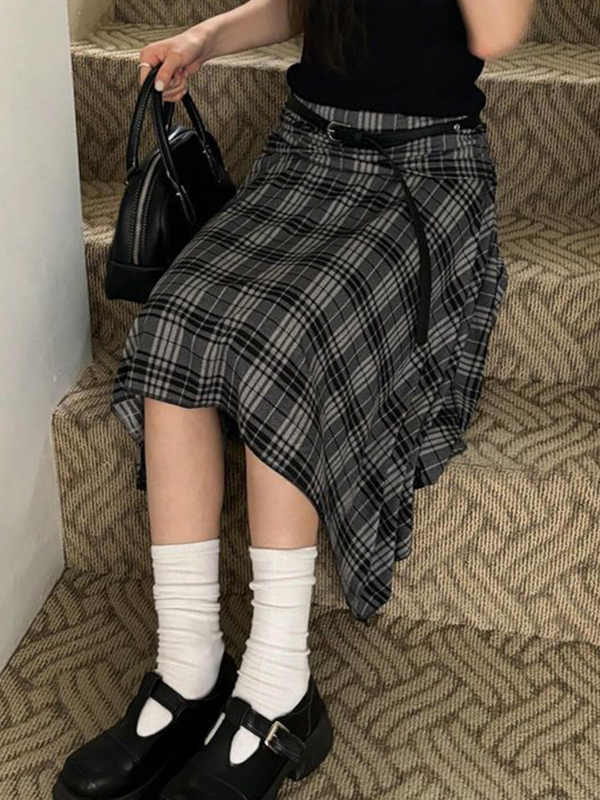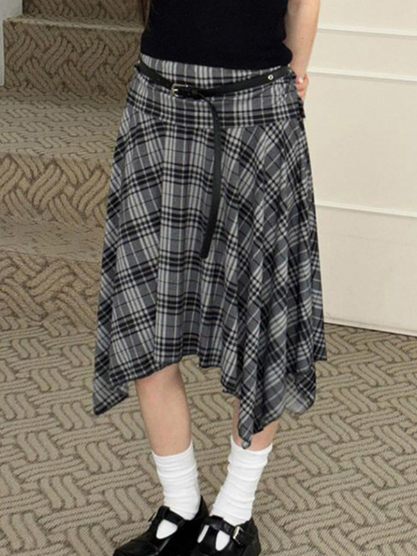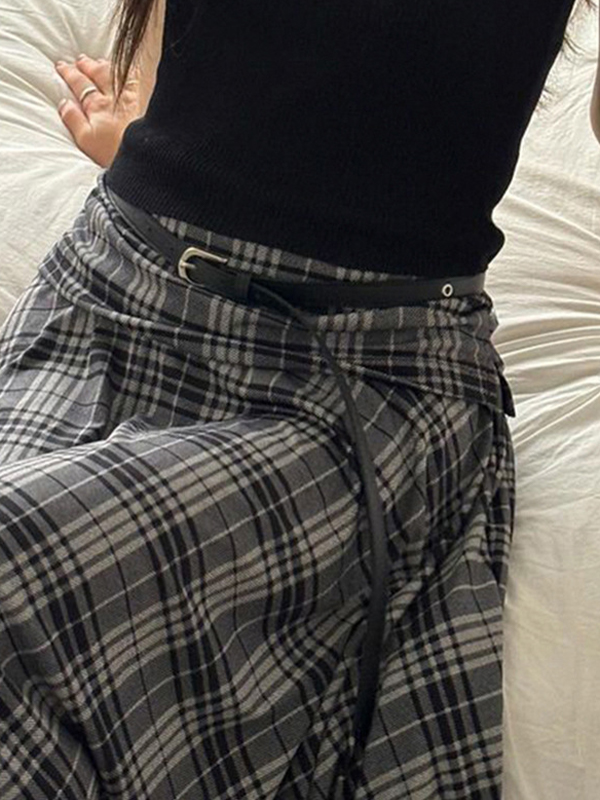 Irregular Contrasting Color Grid Maxi Skirts