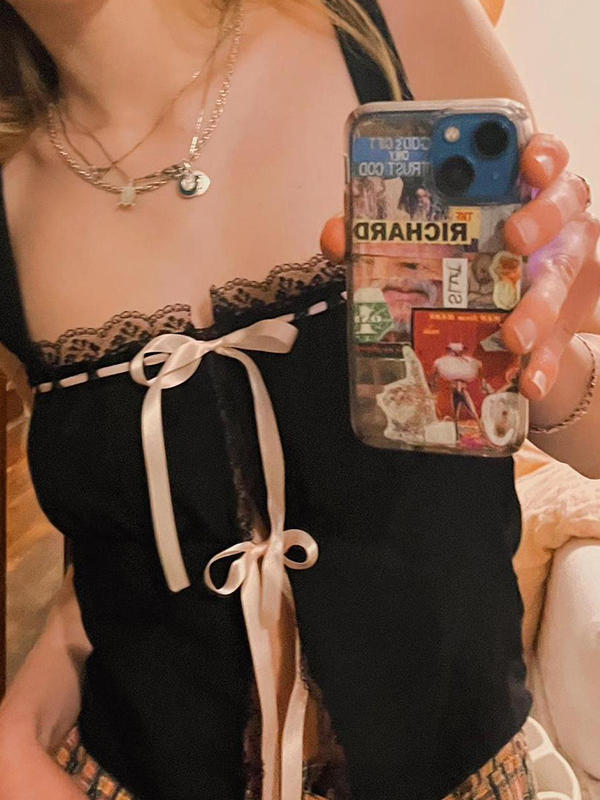 Vintage Appeal: The lace trim and ribbon tie up details give the top a vintage, Y2K inspiration look that is trendy and chic.