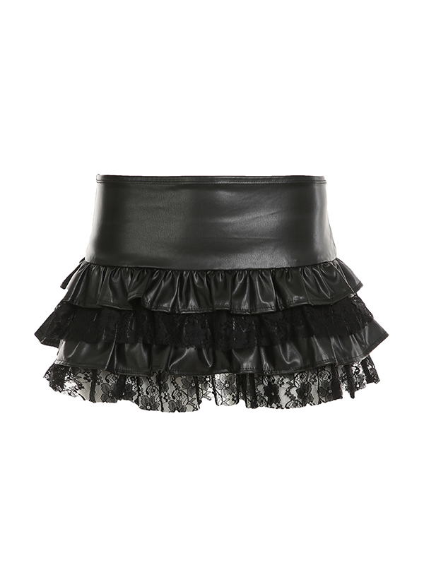 Leather Patchwork Lace Mini Skirts