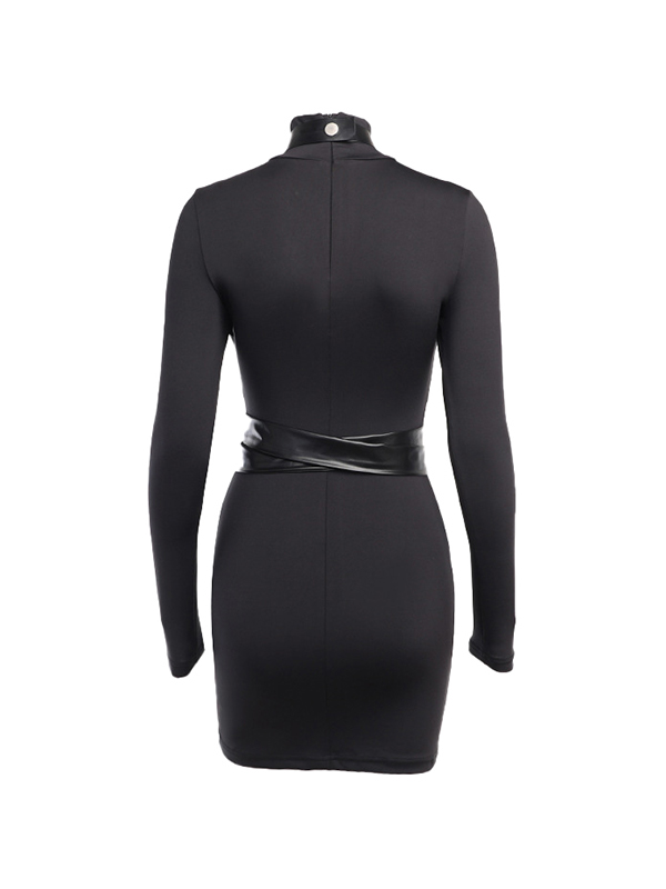 Leather Splice Long Sleeve Bodycon Mini Dress