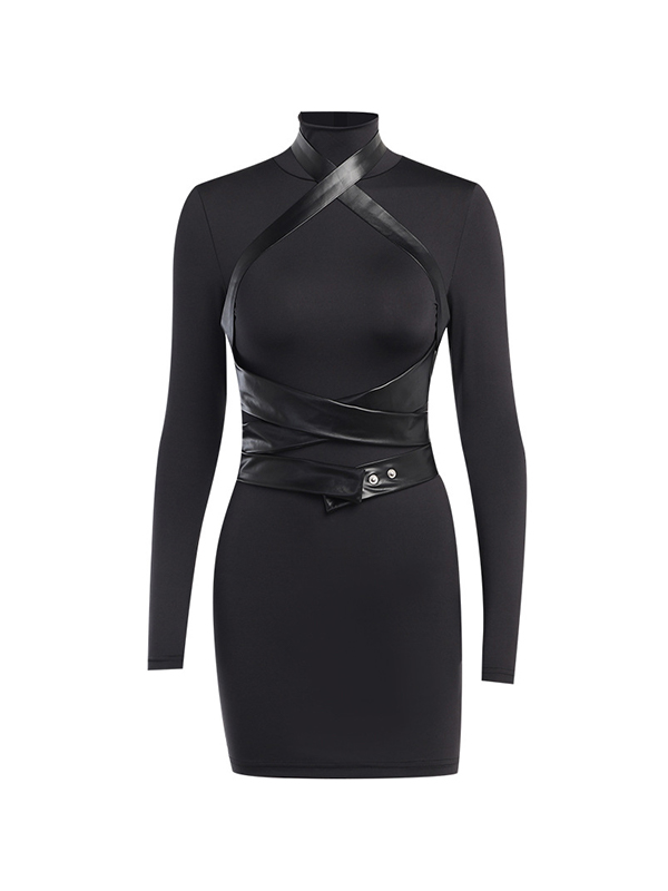Unique Design: The dress features a leather splice design, giving it a cool, punk vibe that stands out from the crowd.