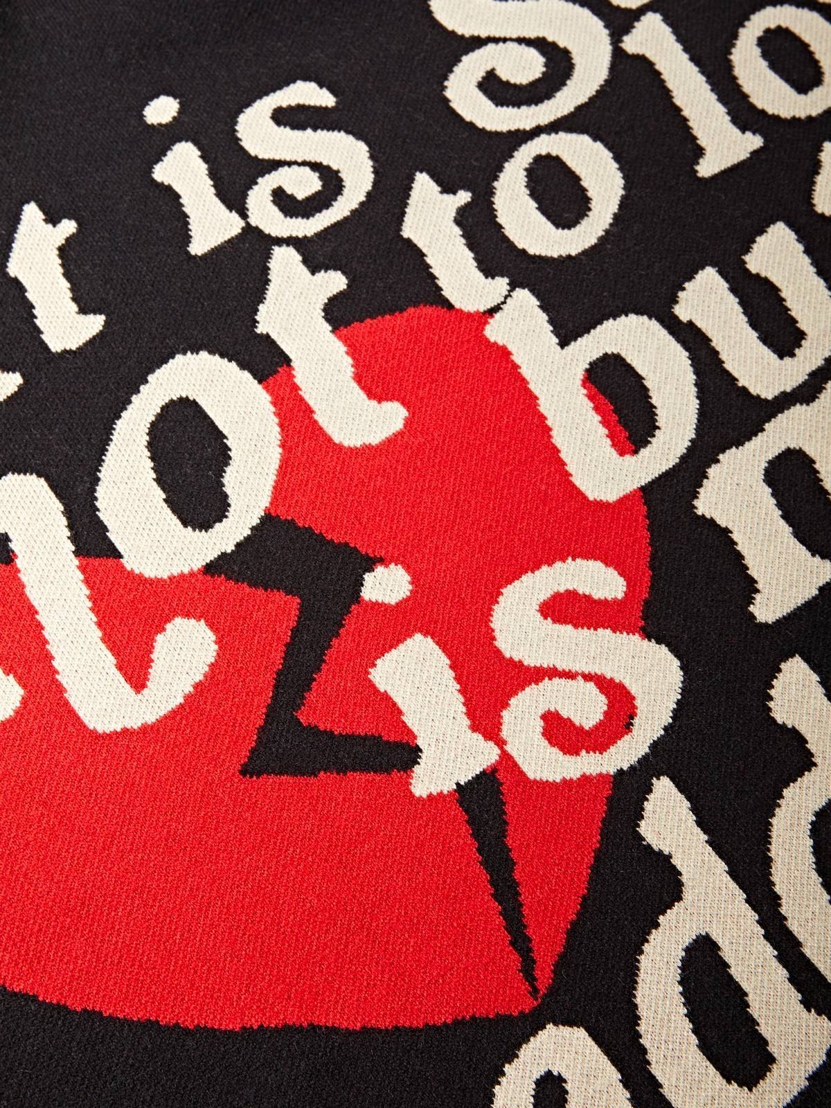 Description: These punk street-vibe jumpers crafted from cotton knit fabric, with drop sleeves design, features a broken heart, slogan letter, skull and flame pattern jacquard detailing.
