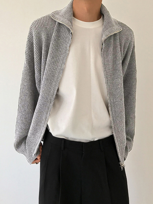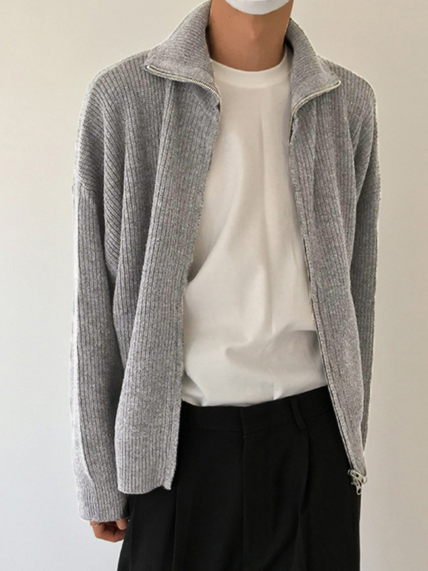 Men’s Solid Color Zipper Cardigan Sweater