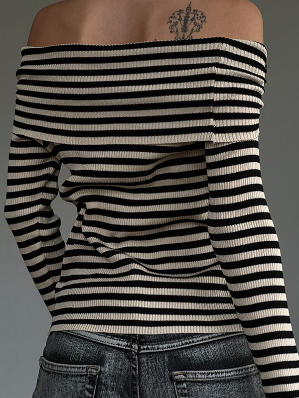 One Shoulder Stripe Long Sleeve Knits
