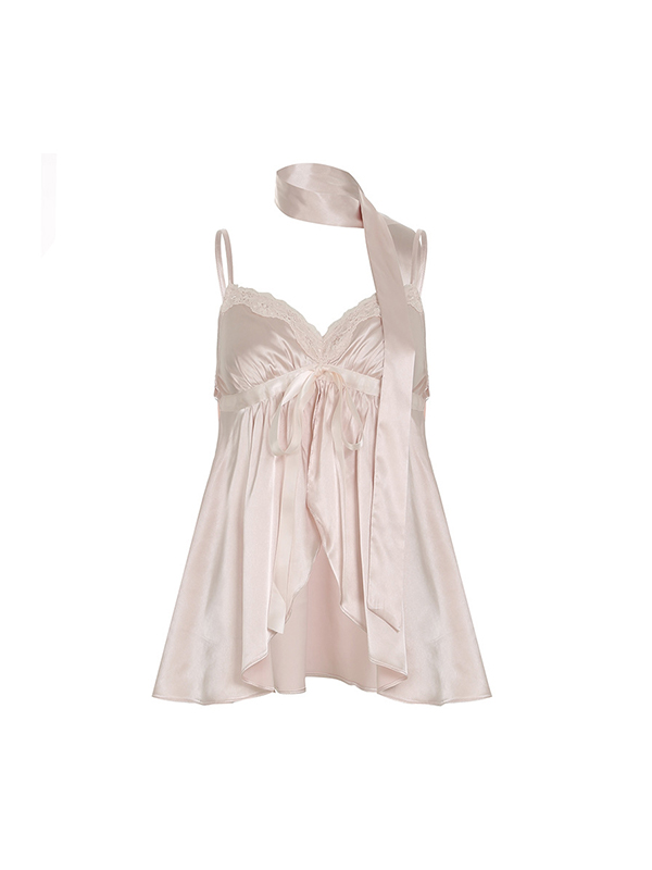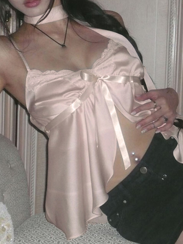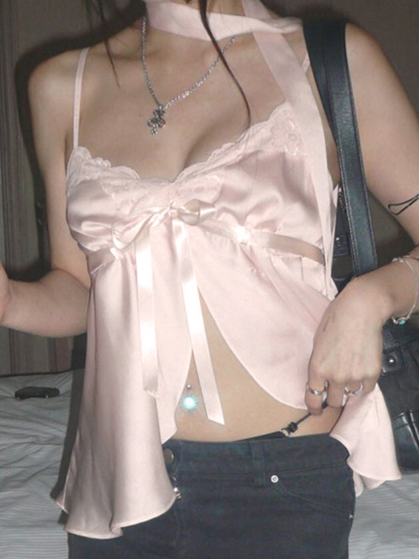 Patchwork Lace-Up Bow Cami Top