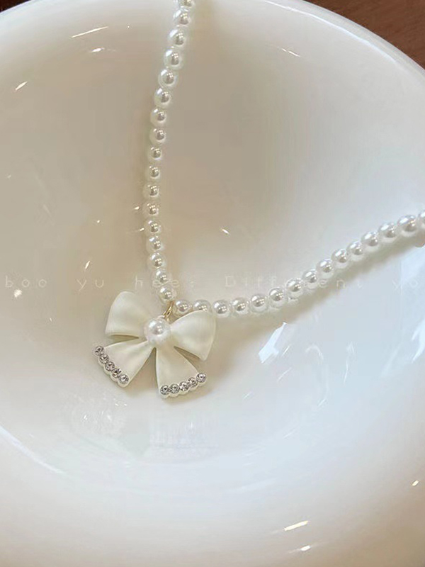 Pearl Bow Collarbone Chain Necklace