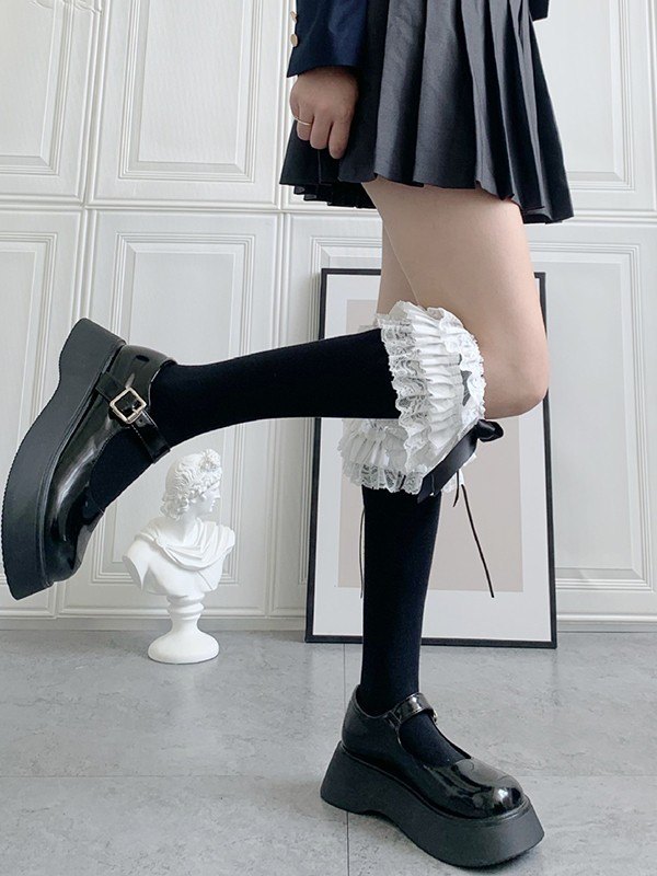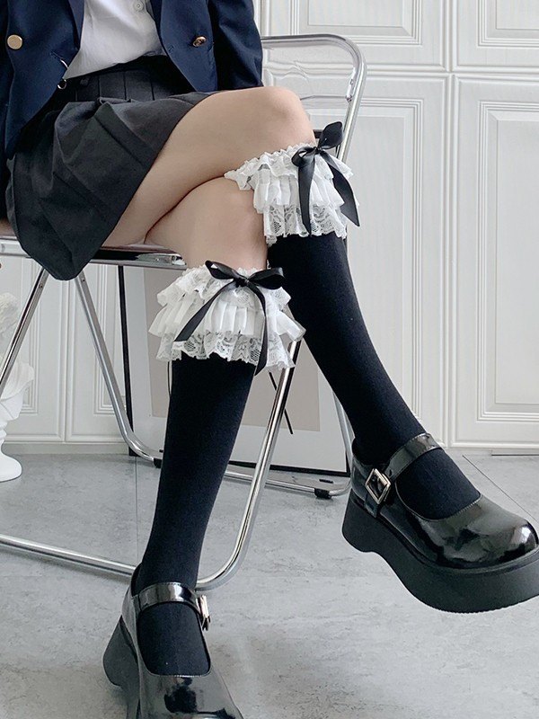 Ruffle Lace Trim Knee High Socks