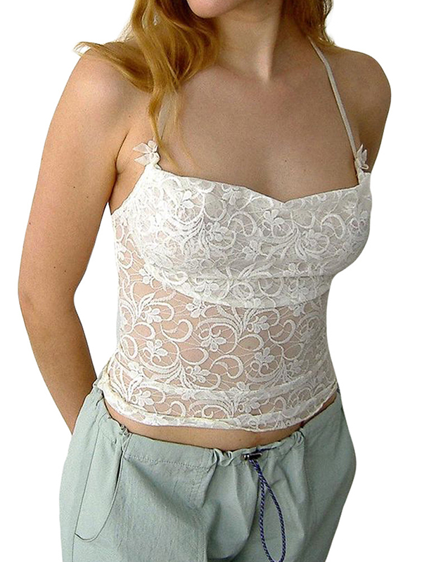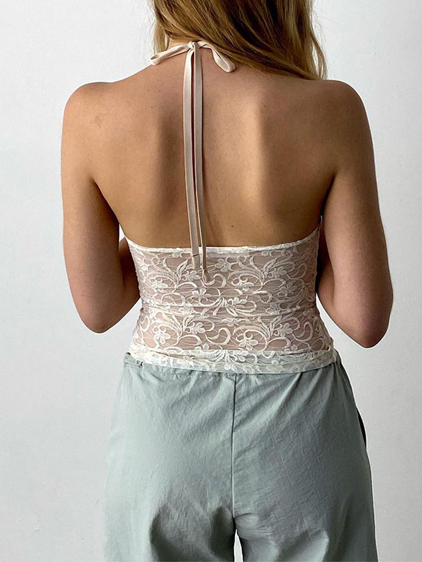 See Through Lace Backless Halter Vest