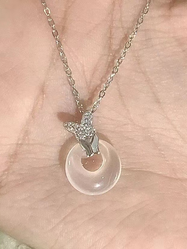 Silver Rhinestone Butterfly Charm Necklace