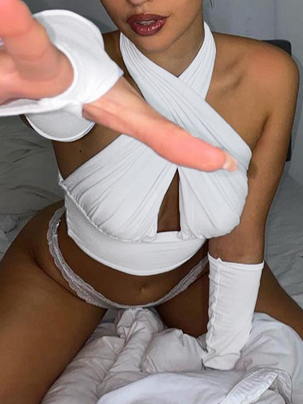 Solid Backless Cropped Halter Vest