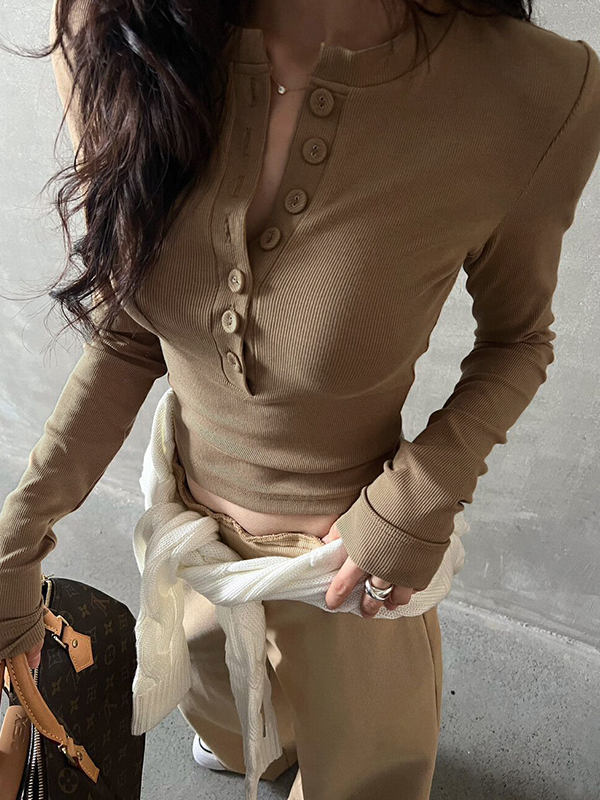Be the first to review “Solid Breasted Slim Long Sleeve Knit”