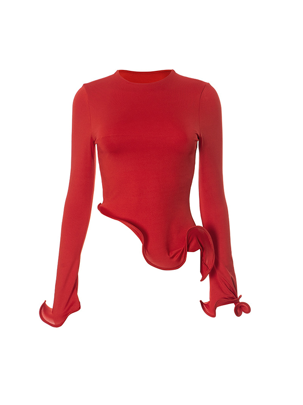 Solid Color Irregular Long Sleeve Tee