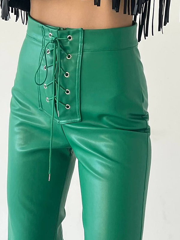Solid Color Leather Pants
