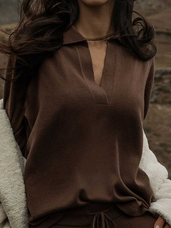 Solid Lapel Neck Knit Sweater