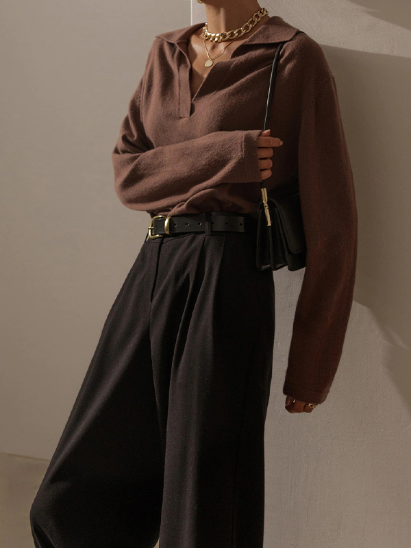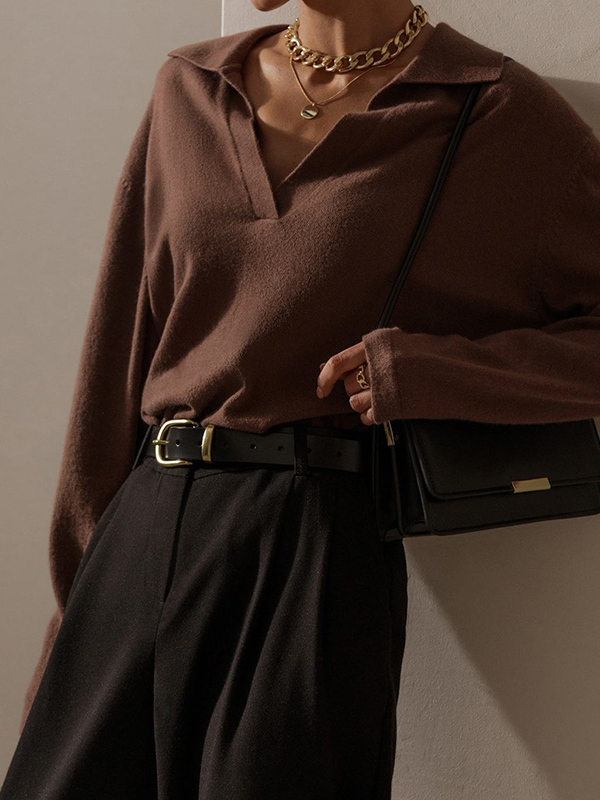 Be the first to review “Solid Lapel Neck Knit Sweater”