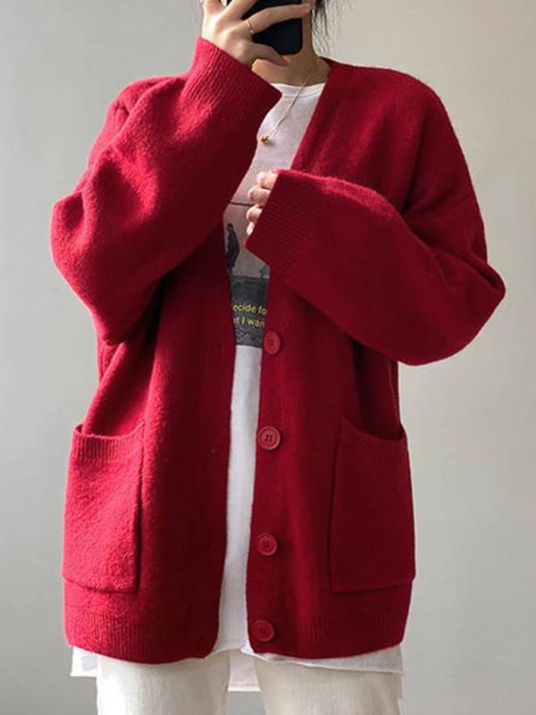 Be the first to review “Solid V Neck Breasted Knit Cardigan”
