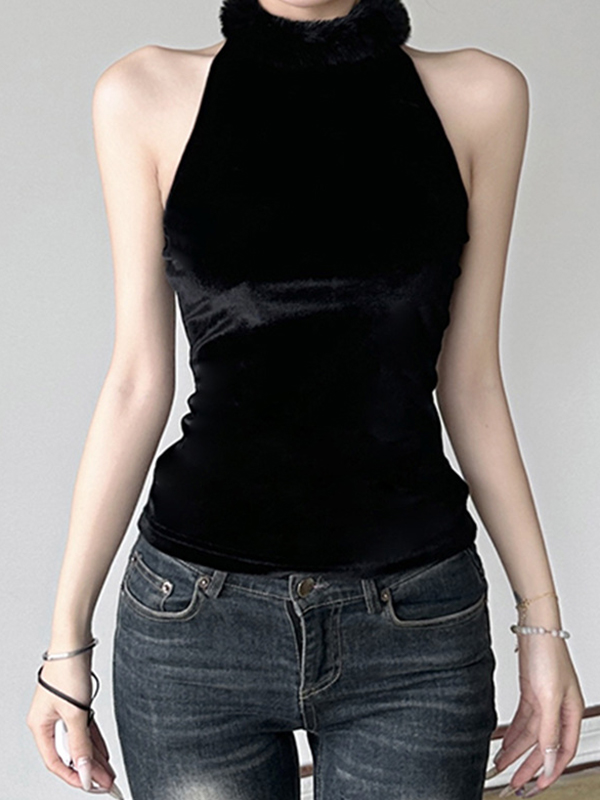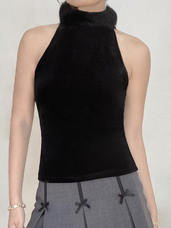 Splicing High Collar Tank Top