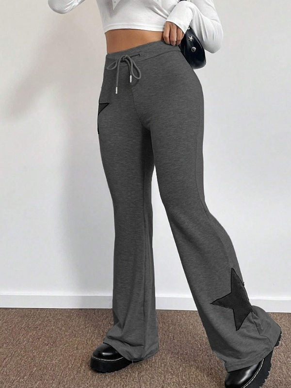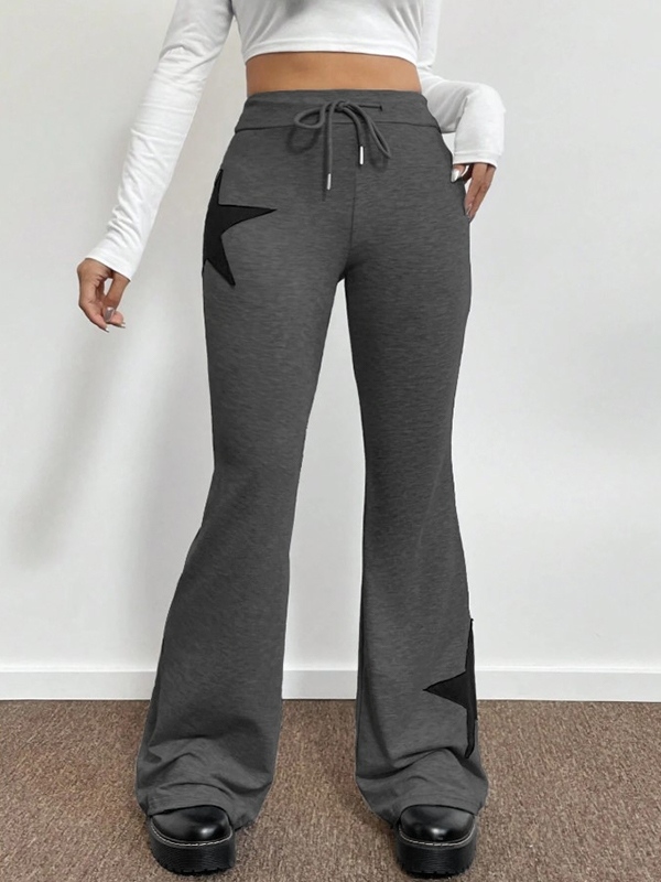 Star Print Highly Elastic High Rise Drawstring Flare Leg Pants