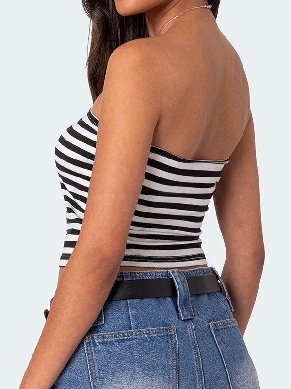 Striped Slim Fit Short Navel Baring Bandeau Top