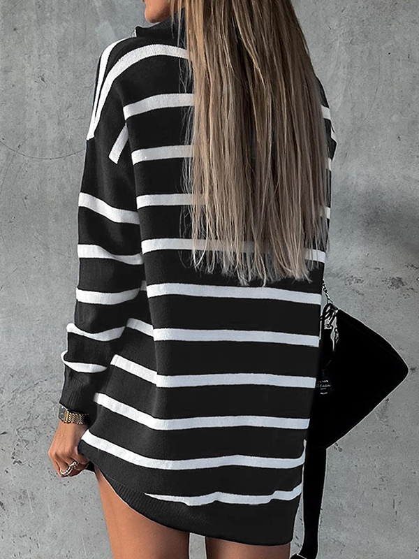 Be the first to review “Striped V Neck Half Zip Loose Knit Sweater Dress”