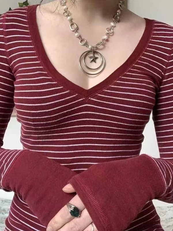Be the first to review “Striped V Neck Knit Long Sleeve Tee”