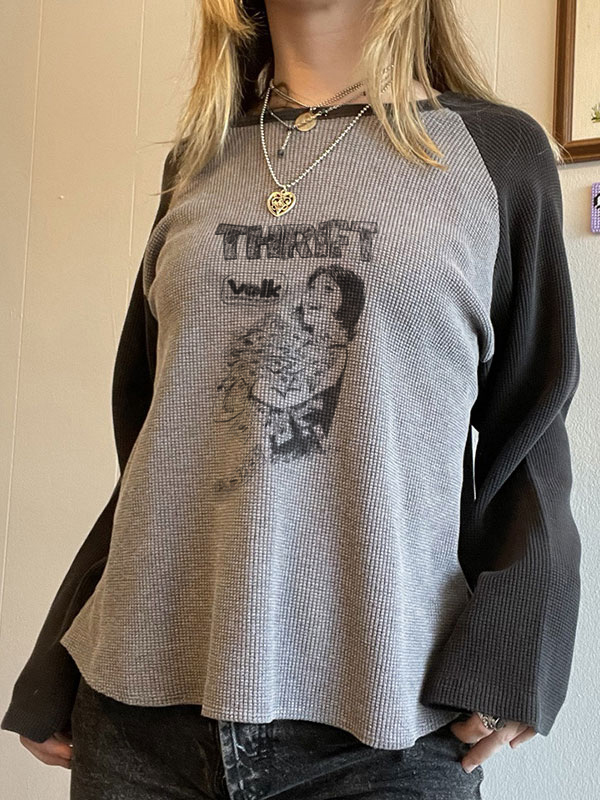 Unique Design: The long sleeve top features a distinctive waffle design and a portrait print, adding a vintage touch to your wardrobe.