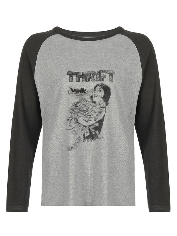 Waffle Portrait Print Raglan Oversized Long Sleeve Tee