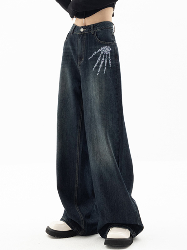 Be the first to review “Washed Skull Print Boyfriend Jeans”
