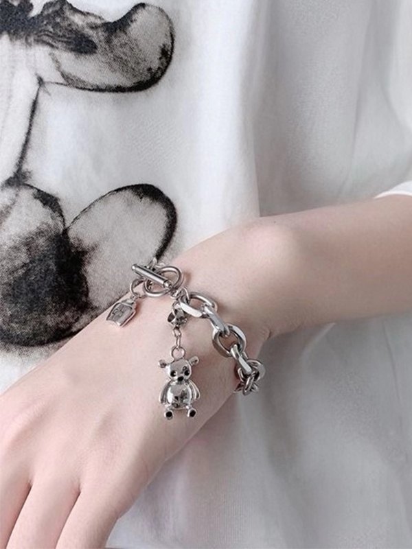 Bear Pendant Chunky Chain Toggle Bracelet