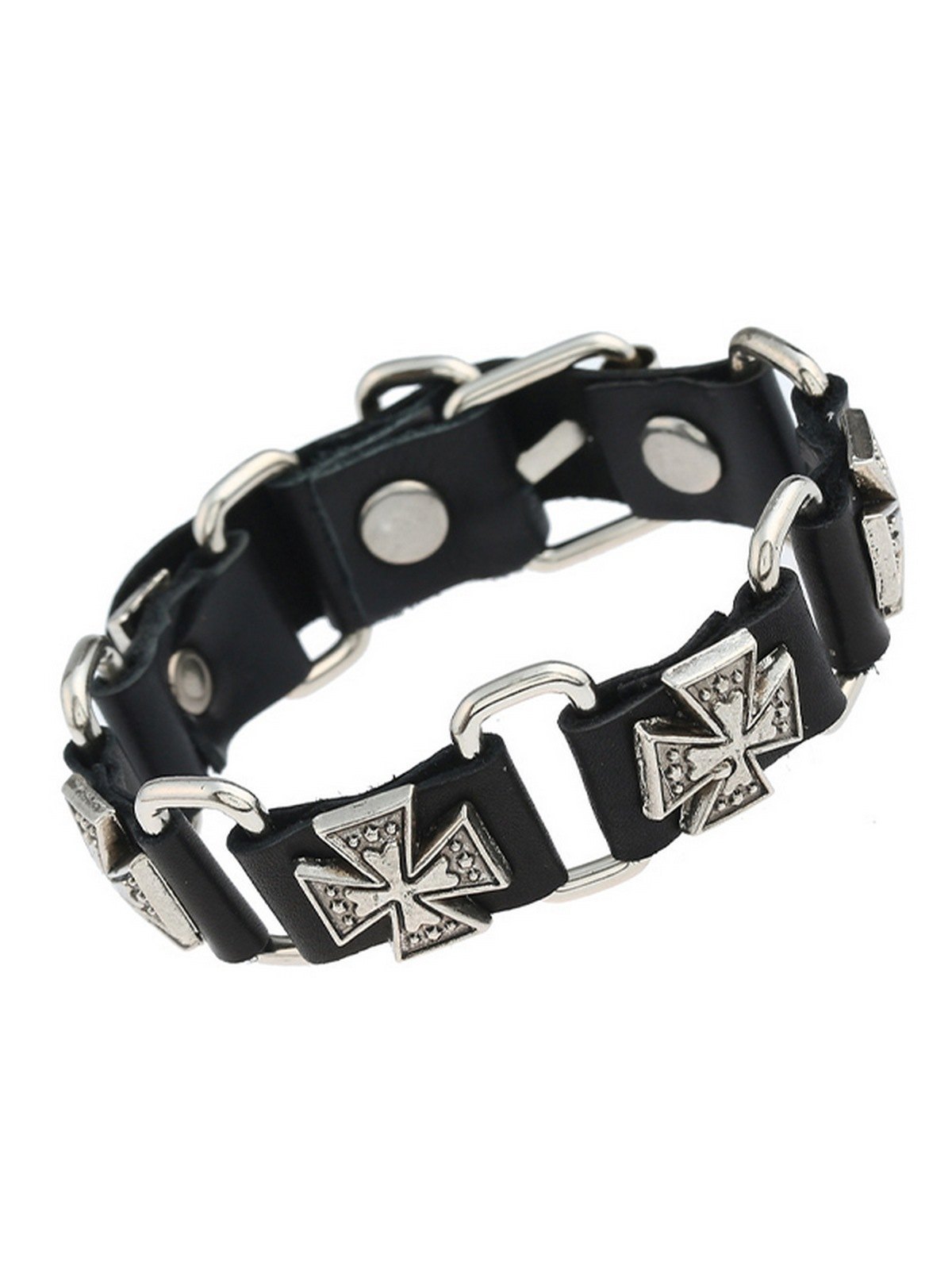 Men’s Cross Pattern Pu Leather Link Bracelet
