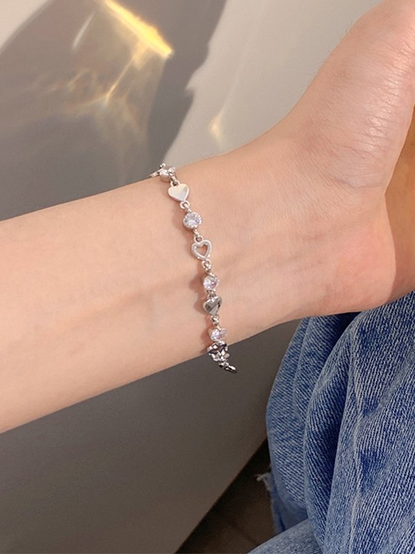 Rhinestone Heart Charm Bracelet