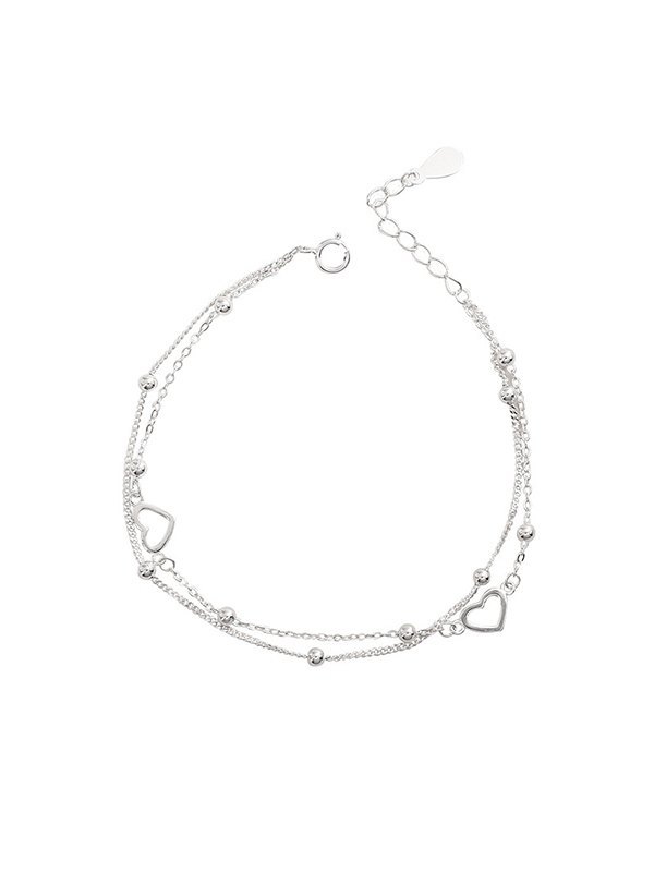 Heart Pattern Double Layered Silver Bracelet
